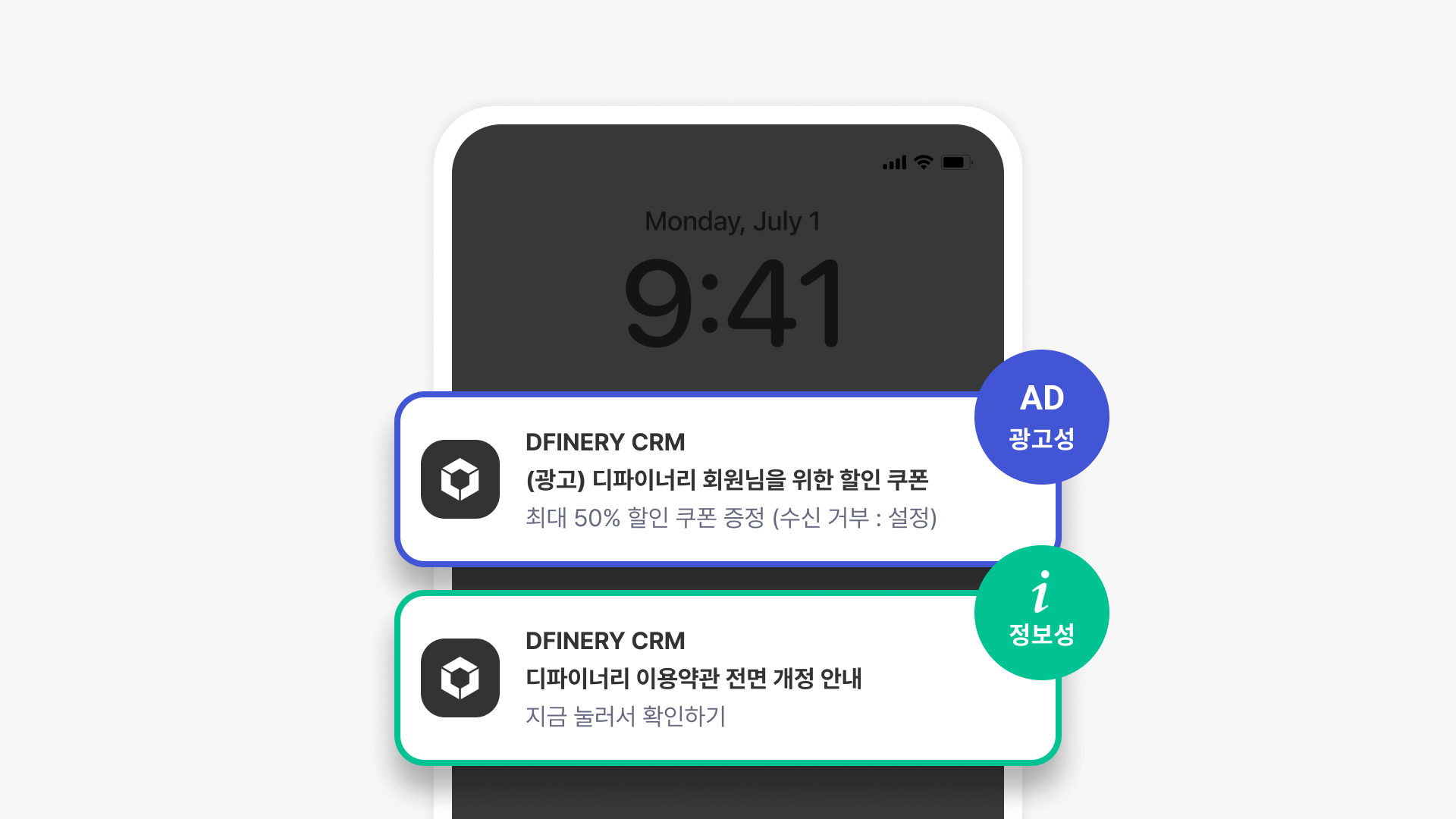 * If you send during the prohibited sending hours (21:00 \~ 08:00) without separate consent to receive night push notifications [<mark style="color:purple;">\[Article 50 of the Information and Communications Network Act\]</mark>](https://www.law.go.kr/%EB%B2%95%EB%A0%B9/%EC%A0%95%EB%B3%B4%ED%86%B5%EC%8B%A0%EB%A7%9D%20%EC%9D%B4%EC%9A%A9%EC%B4%89%EC%A7%84%20%EB%B0%8F%20%EC%A0%95%EB%B3%B4%EB%B3%B4%ED%98%B8%20%EB%93%B1%EC%97%90%20%EA%B4%80%ED%95%9C%20%EB%B2%95%EB%A5%A0/%EC%A0%9C50%EC%A1%B0)