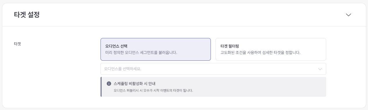 Set your target by selecting an audience or using the target filtering feature.