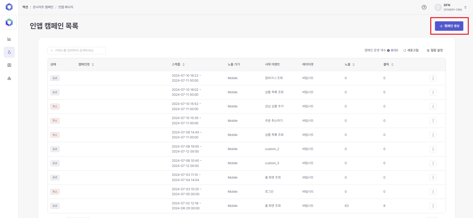 To optimize speed, in-app messages can be operated up to 50 per service. The total limit of 50 applies to in-app messages in the Pending / Preparing for Operation / Operating status.