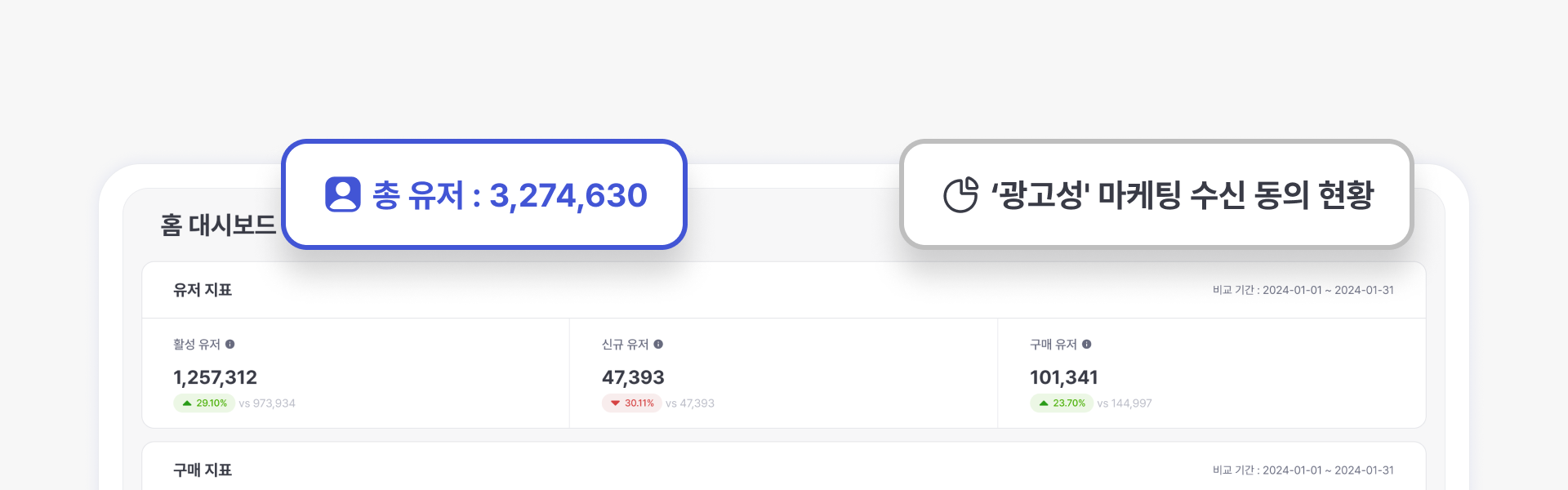 The total number of users and 'advertisement' marketing consent status provided on the home dashboard are figures based on user profile information, regardless of the analysis period.