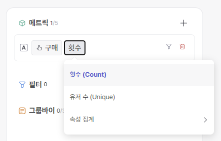 After you select a specific event, you can choose how to measure that event. When you select an event, Definer uses Count as the default measurement method. Count refers to the total number of times the selected event occurred during the analysis period.