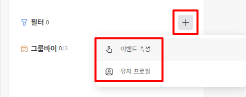 Similarly, for the overall filter, you can exclude that step if you don't want to apply the filter. Click the + button to set the event properties or user profile data as filtering conditions.