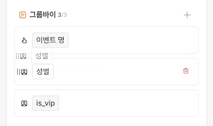 If you want to divide your data into groups, set Group By. Set the data items linked to the event/event attribute and user profile to Group By.