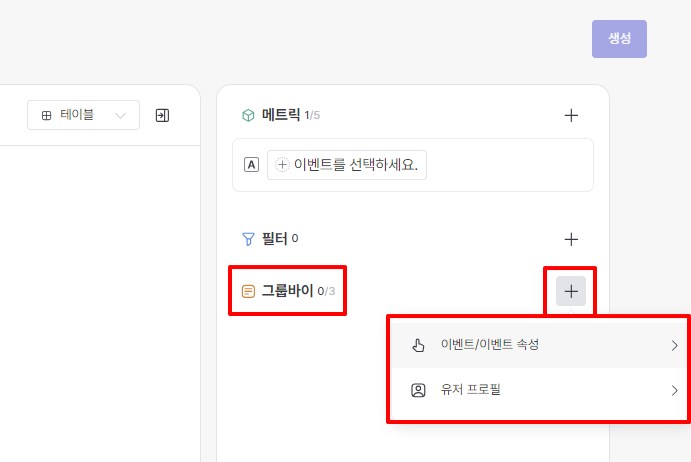 If you want to divide the set metric values ​​by group, you can select the following items in Group By.