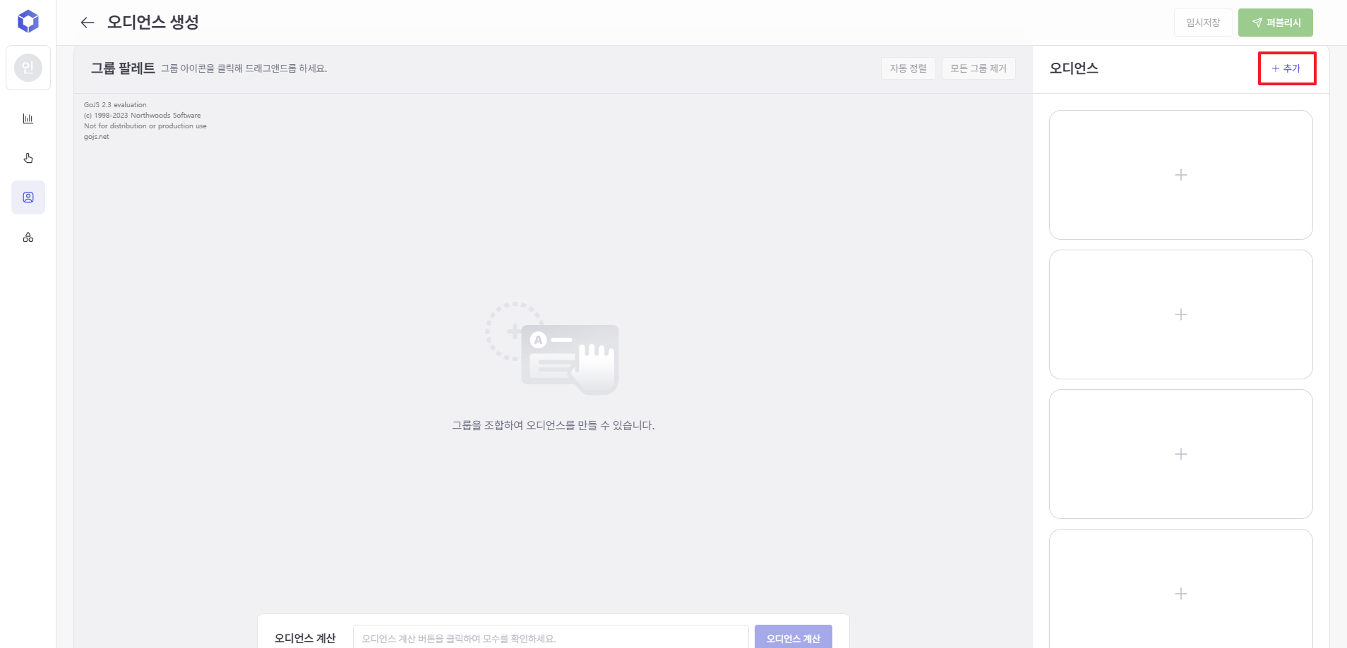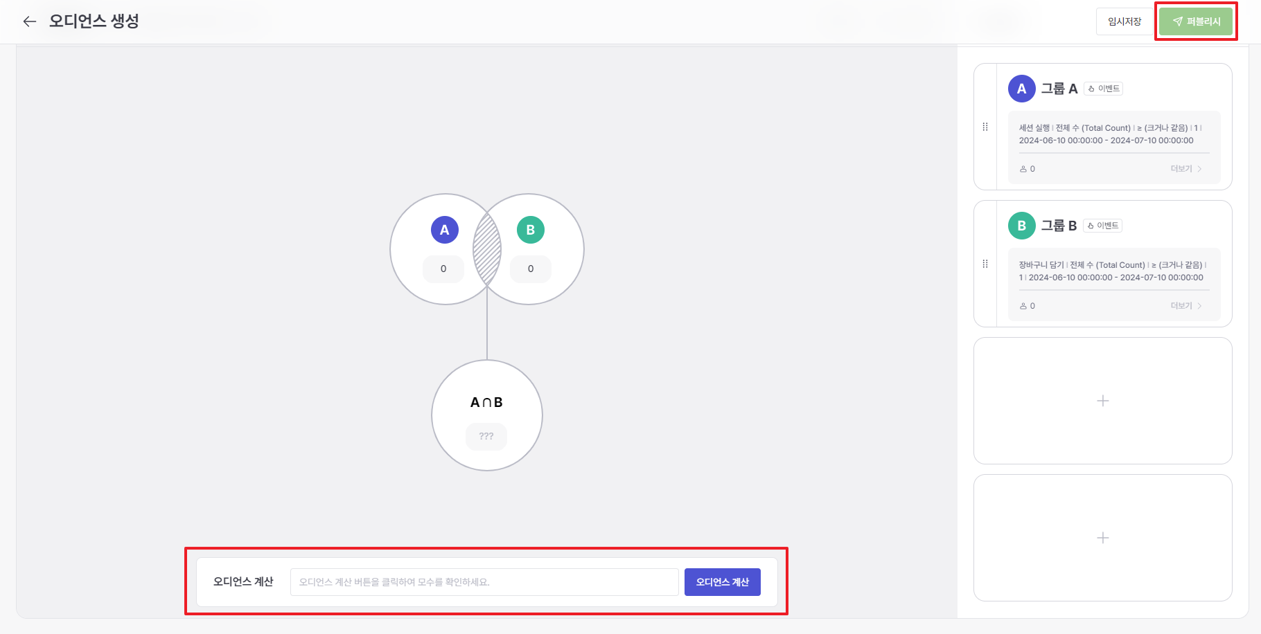 Drag and drop the created groups to create intersections, unions, differences, complements, and symmetric differences according to your purpose and needs. Audience calculations are not possible if there are any uncombined groups left.