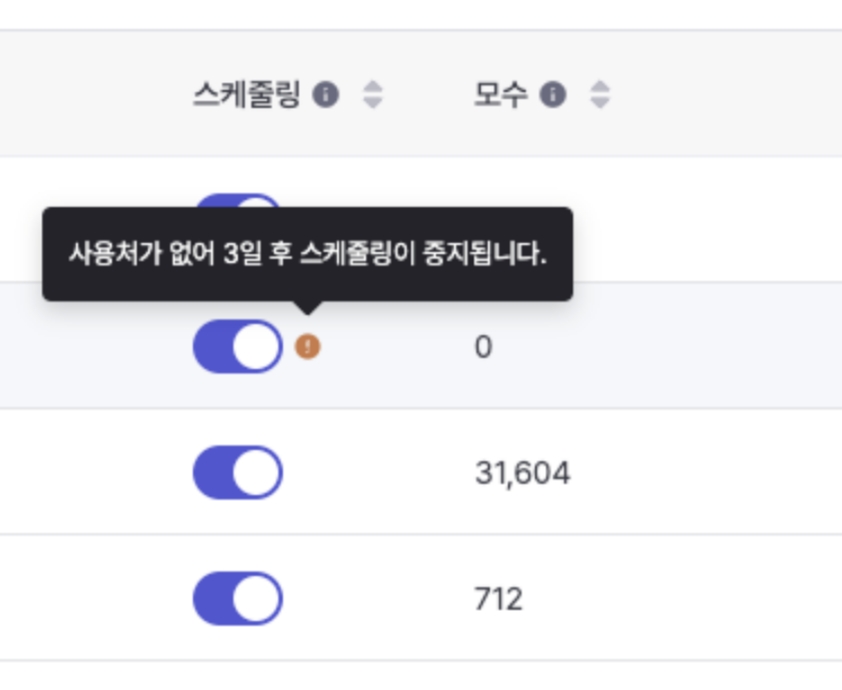 As shown below, audiences scheduled to have their scheduling turned off automatically are displayed separately in the audience list with a tooltip.