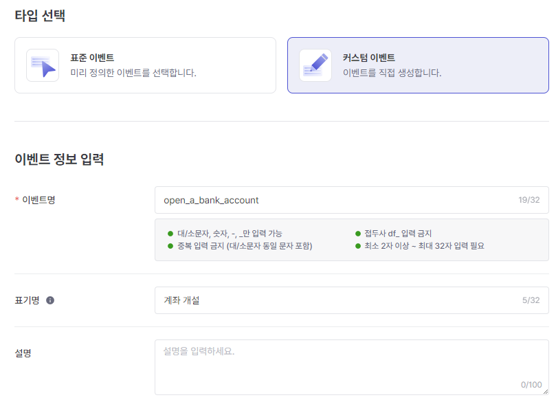 When a standard event is created, sub-standard event properties are automatically created, and the sub-standard event properties differ depending on the standard event.