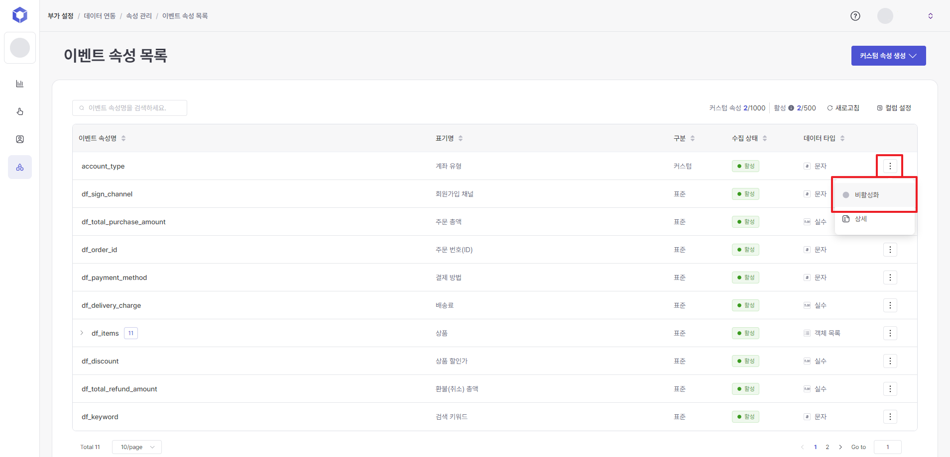 df_items is a standard event attribute that is automatically generated when registering a standard event related to ECommerce. Unlike other attributes, df_items has a 2-depth structure. Under the df_items(product) attribute, there is attribute information related to the product, such as the product number and unit price. Custom attributes can also be added under the df_items(product) attribute.