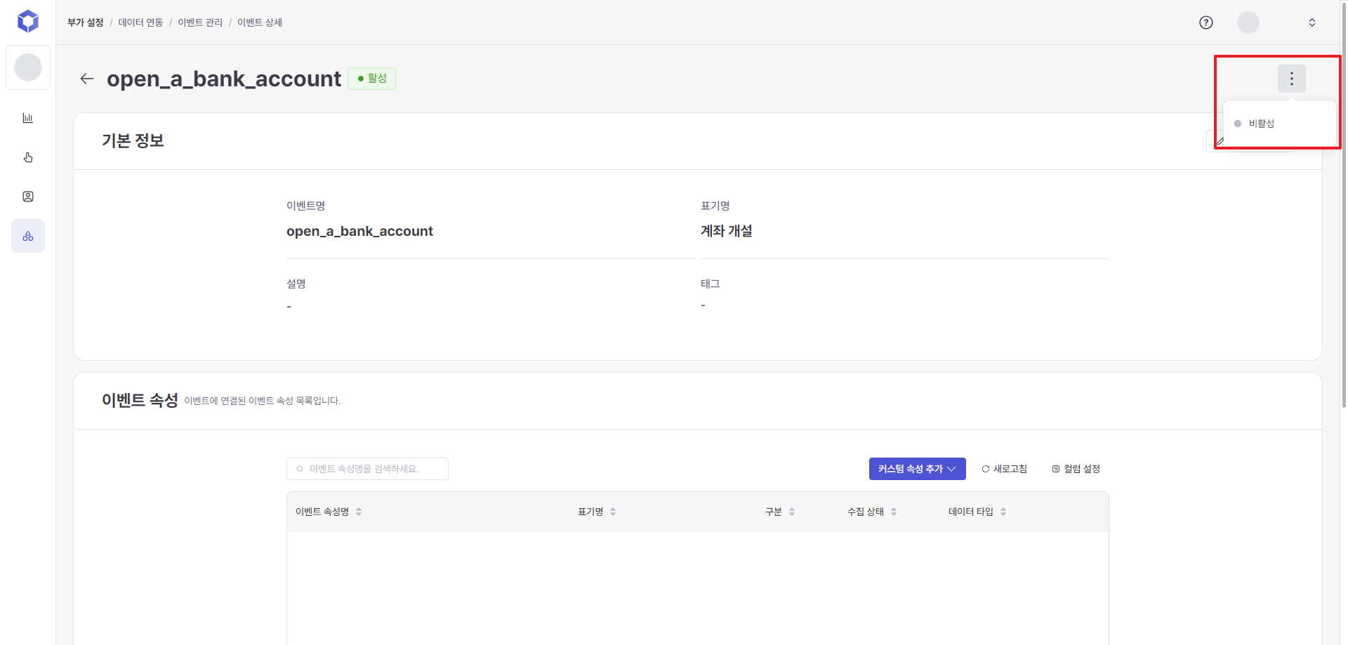 Additional Settings > Data Linking > Event Management > Event List > Event Details > Click the ⋮ (Settings) button on the top right > Click the Activate / Deactivate button