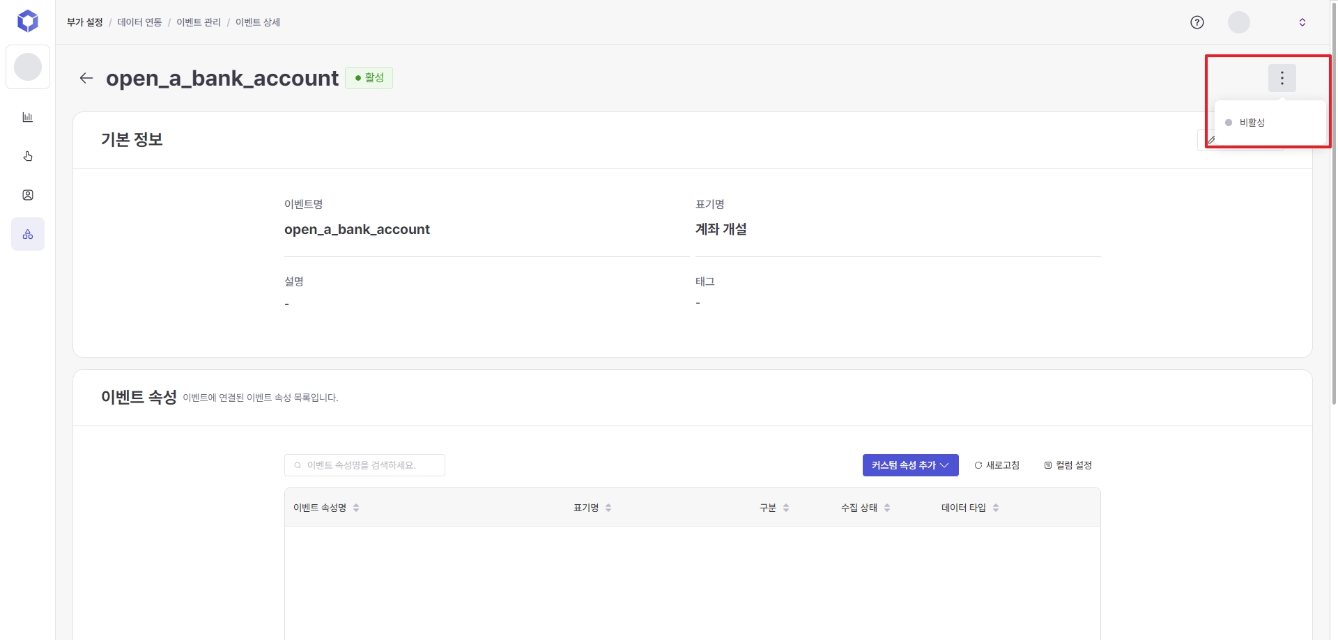 Users can change the collection status of their data to 'inactive' (except for system events). When inactive, data for the event and its sub-attributes will no longer be collected, and updates will stop in the event usage area.