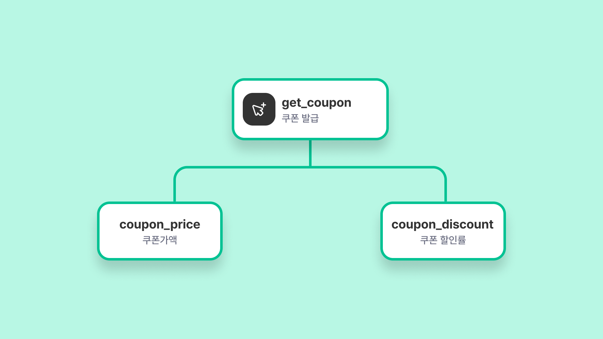 <table><thead><tr><th width="188">Event</th><th width="146">Notation Name</th><th width="221">Explanation</th><th>Sub-attributes</th></tr></thead><tbody><tr><td><em>get_coupon</em></td><td>Coupon issuance</td><td>User receives coupon</td><td>Coupon Amount</td></tr><tr><td></td><td></td><td></td><td>Coupon Discount Rate</td></tr><tr><td><em>remove_from_cart</em></td><td>Delete Cart</td><td>An action taken by a user to remove a specific product from the shopping cart.</td><td>Product Name</td></tr><tr><td></td><td></td><td></td><td>Product Price</td></tr><tr><td></td><td></td><td></td><td>Product Category</td></tr><tr><td></td><td></td><td></td><td>Product Brand</td></tr><tr><td></td><td></td><td></td><td>Product Color</td></tr></tbody></table>