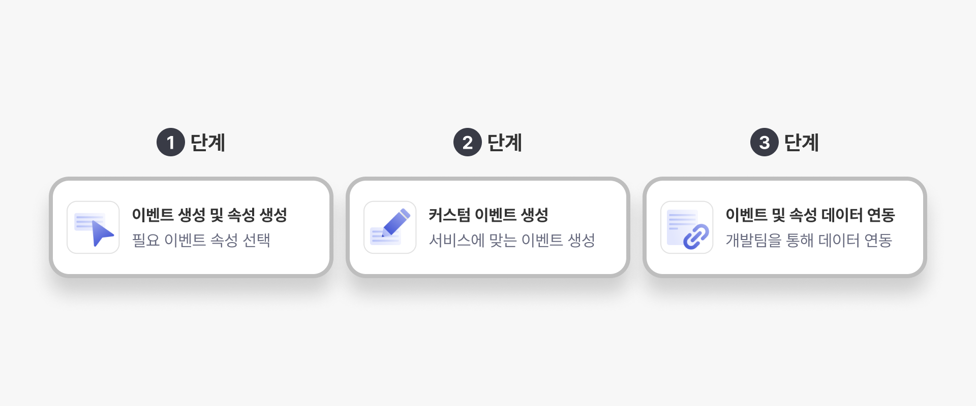 <table data-view="cards"><thead><tr><th></th><th></th><th></th></tr></thead><tbody><tr><td>Create custom events tailored to your service's needs</td><td></td><td></td></tr><tr><td>Create custom event properties to suit your service's needs</td><td></td><td></td></tr><tr><td>Create custom user profile attributes to suit your service's needs</td><td></td><td></td></tr></tbody></table>