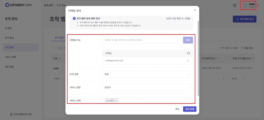Only organization information can be viewed. Users must first be added as members of the organization to access the service.