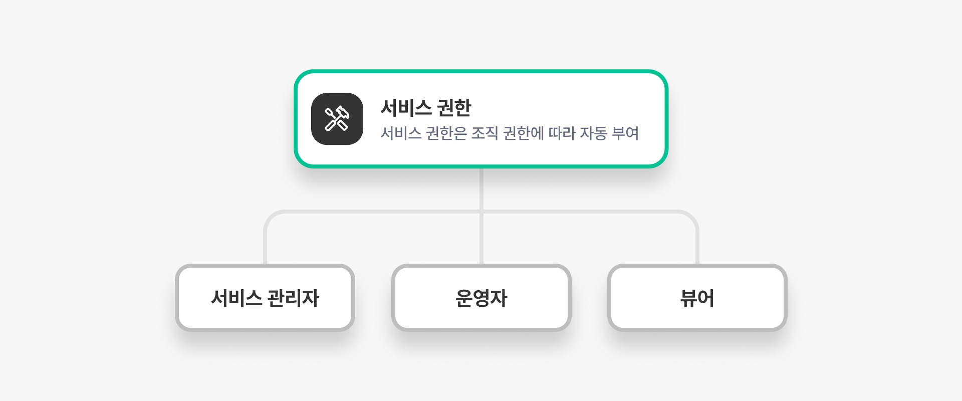 Permissions for the entire service. Owners and organization administrators of an organization automatically receive administrator permissions for the service.