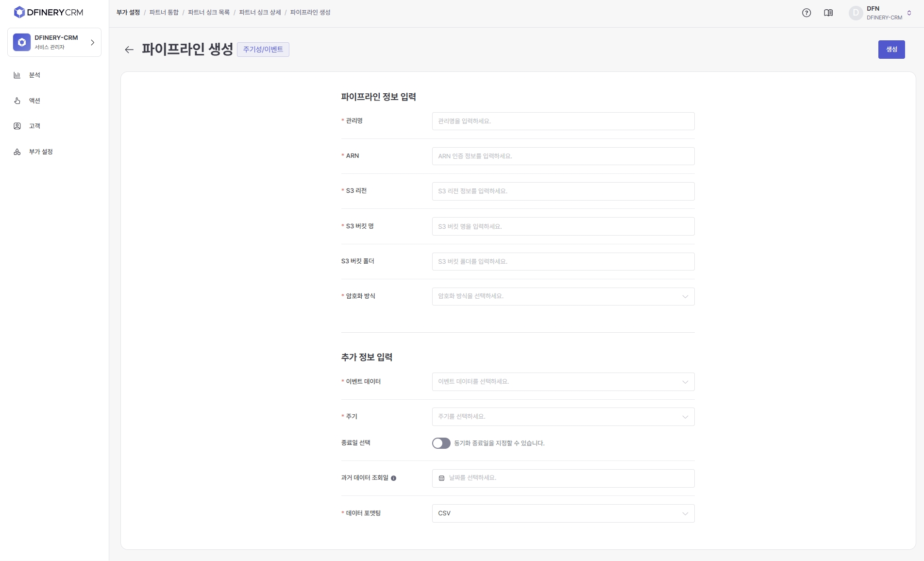 A set of methods that include path information and conditions for DFINERY to export data to partner storage. The types of pipelines provided by DFINERY are divided into periodic and one-time.