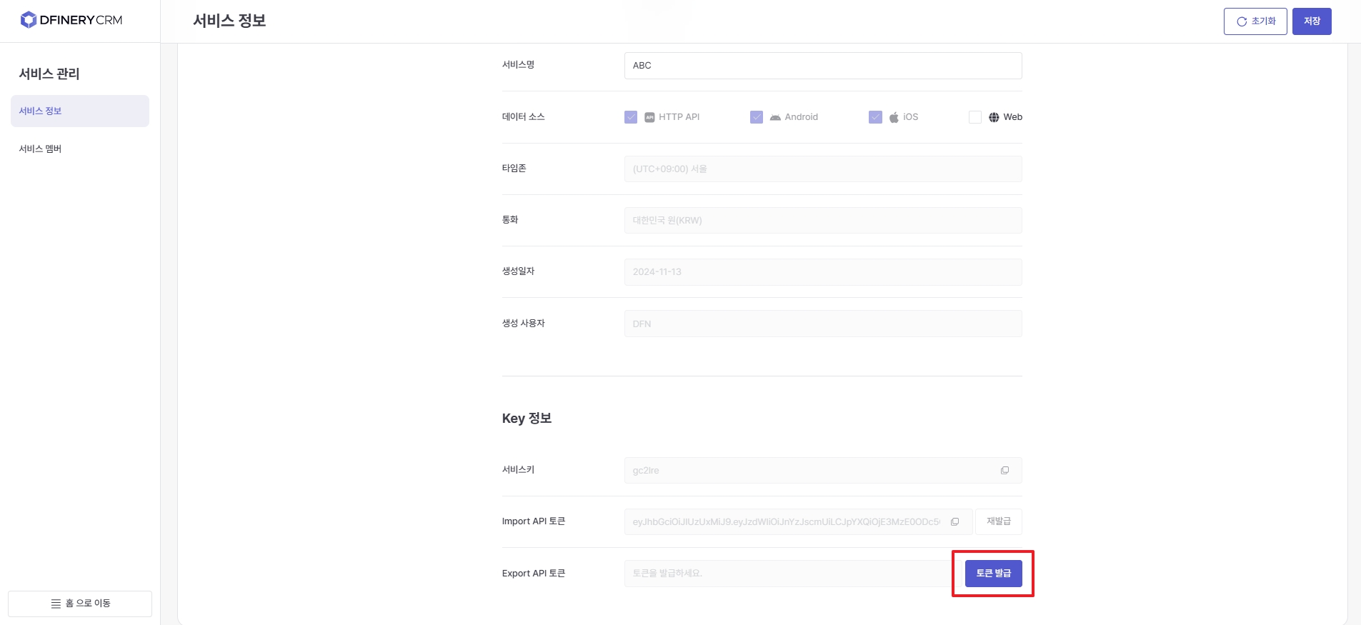 Additional Settings > Partner Integration > HTTP API (Export) List > Click the API Token Management button on the top right or Service Management > Service Information