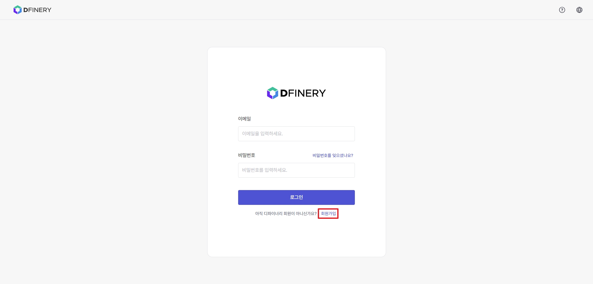 Access the console page (https://console.dfinery.ai/) and click the sign up button.