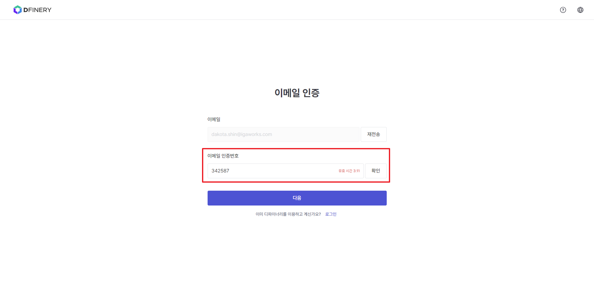 • Cannot be checked in the spam mailbox: Contact the Dfinery team ([email protected]) with the email account information used to register as a member.